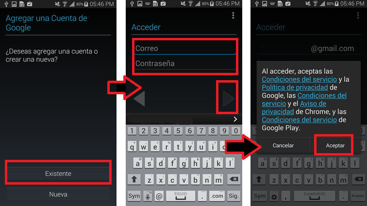 Lee los términos y condiciones de Google y, si estás de acuerdo, toca en "Aceptar" o "Siguiente" para continuar.